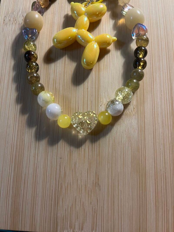 Hand picked and threaded beads with detachable balloon dog keyring can also be used as a car mirror hanger