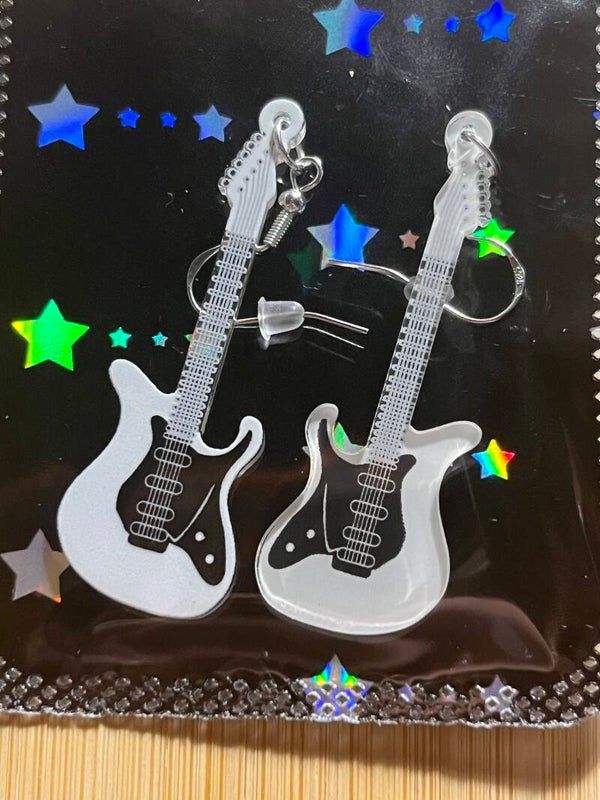 These are all handmade using 925 silver plated fish hook earrings.Featuring matching acrylic guitars and come with silicon stoppers for extra security.
