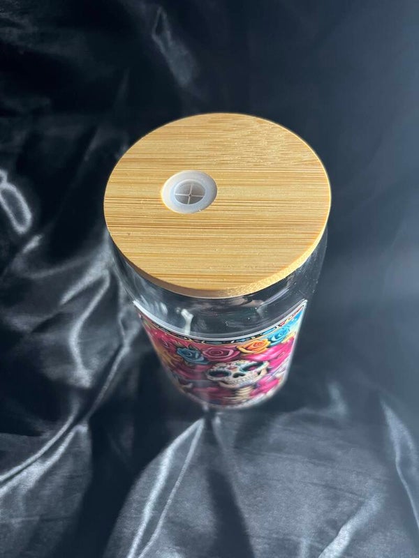 These libby cans are glass with glass straw and bamboo lid and are 16oz.